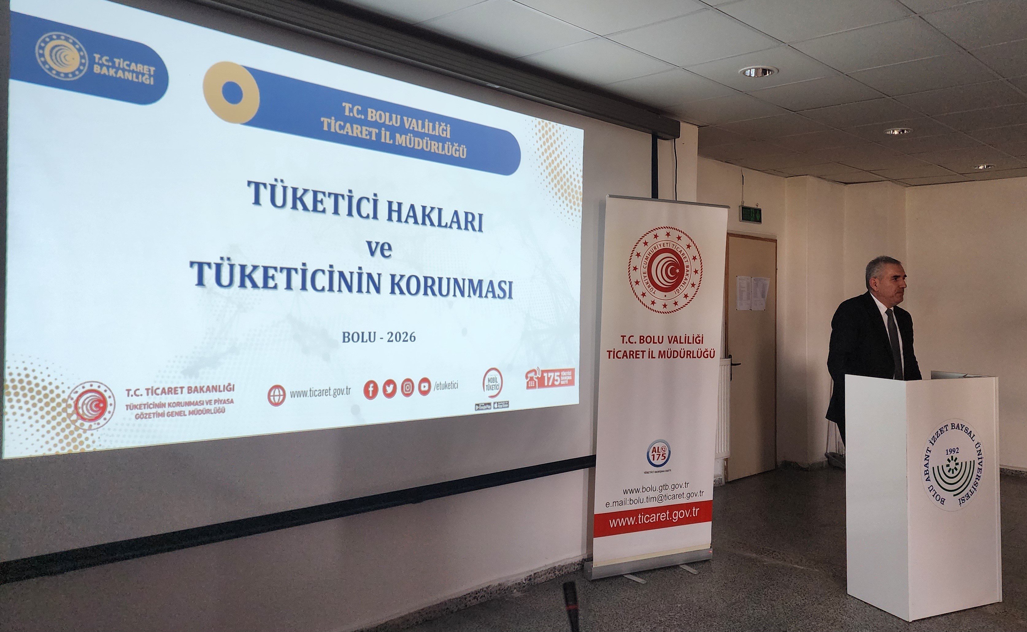 Gerede MYO. Müdürü Dr. Öğr. Üyesi Hakan ÇAMBEL, MYO. Öğretim Görevlileri, Öğrenciler ile birlikte Gerede Ticaret ve Sanayi Odası Başkanı Ersin KAŞKA'nın da katılım sağladığı programda Bolu Ticaret İl Müdürü Ersin TERZİ tarafından kooperatifçiliğin tarihi ve temel ilkeleri, kampüs kooperatifçiliği vizyonu ve tüketici hakları konularında bilgilendirmede bulunuldu.